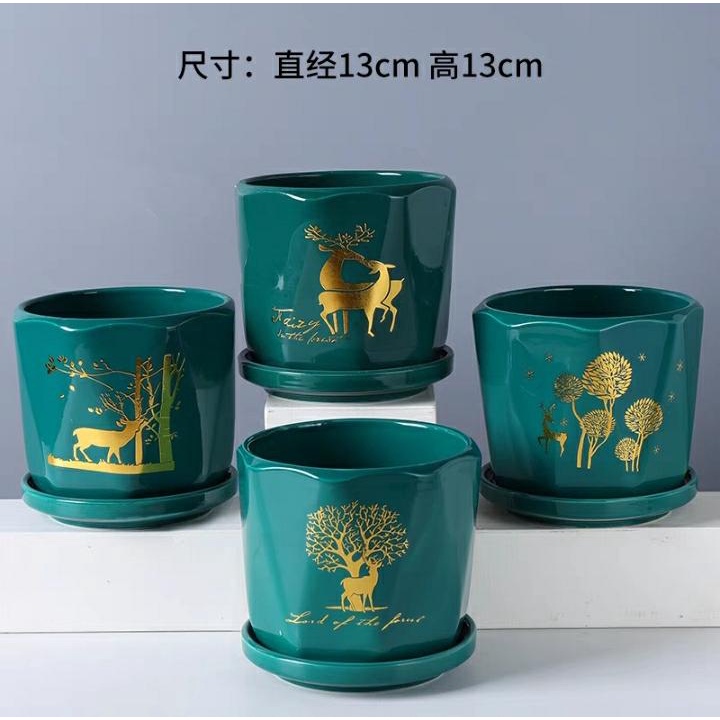 Jual Pot Keramik Hijau Motif Gold Deer Shopee Indonesia